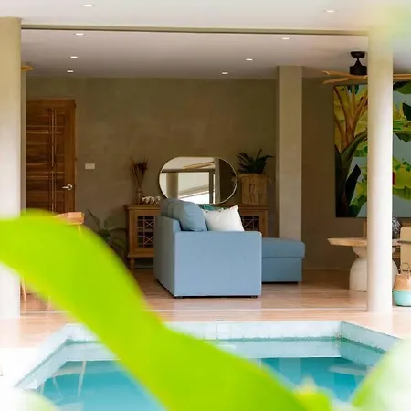 שוכן בעיר קו סמוי, Carbana Lodge, 1 Bedroom - Eco Lodge, Koh Samui זהו נכס בעל 1 חדרי שינה, כולל מרפסת עם נוף של ברכה. וילה עם בריכת שחייה פרטית מספקת גם כן נופים של גינה.